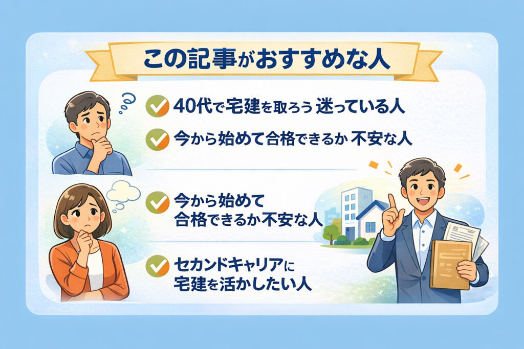 - ✅ セカンドキャリアに宅建を活かしたい人