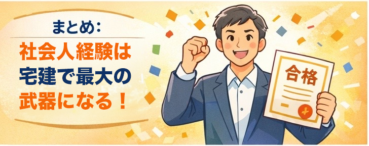 宅建で学ぶ内容には、契約・取引・法律・ローンなど、社会人として経験した場面と重なるものが多いです。「あのときの契約書はこういう意味だったのか」と理解が早まります。知識をゼロから覚えるより、経験と結びつけて学べるぶん、定着しやすいです。